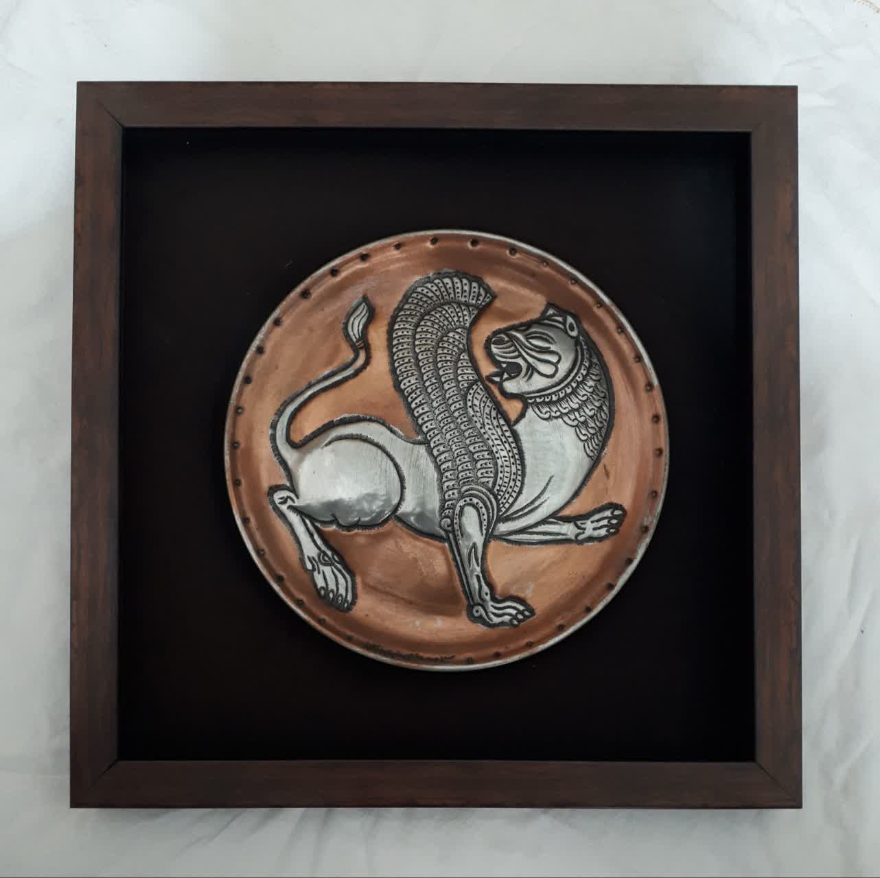 بشقاب قلم زنی طرح ریتون شیر بالدار